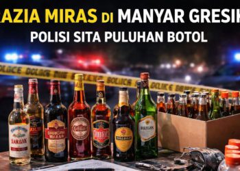 JAVASATU.COM- Aparat Polres Gresik menyita puluhan botol minuman keras (miras) dari sebuah warung di Jalan Desa Roomo, Kecamatan Manyar, Kabupaten...