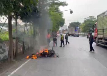 JAVASATU.COM- Sepeda motor terbakar di depan pintu keluar Terminal Bunder, Gresik, Selasa (31/3/2026) sekitar pukul 16.09 WIB. Petugas Satlantas Polres...