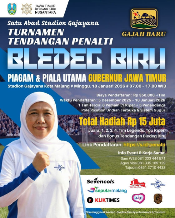 JAVASATU.COM- Stadion Gajayana, Kota Malang, genap berusia 100 tahun. Momen bersejarah itu akan diperingati dengan Trofeo All Star Legends Indonesia dan Turnamen Tendangan Penalti Piala Gubernur Jawa Timur 2026 yang digelar Minggu, 18 Januari 2026.