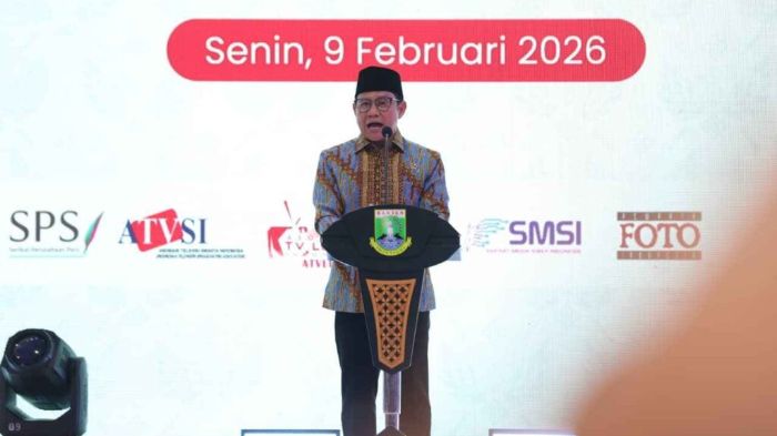 JAVASATU.COM- Menteri Koordinator Bidang Pemberdayaan Masyarakat Muhaimin Iskandar mewakili Presiden RI Prabowo Subianto membuka puncak peringatan Hari Pers Nasional (HPN) 2026 di Lapangan Masjid Raya Al-Bantani, Kawasan Pusat Pemerintahan Provinsi Banten (KP3B), Senin (9/2/2026). Pembukaan ditandai dengan pemukulan terbang besar sebagai simbol penguatan peran pers dalam menjaga demokrasi dan persatuan bangsa.