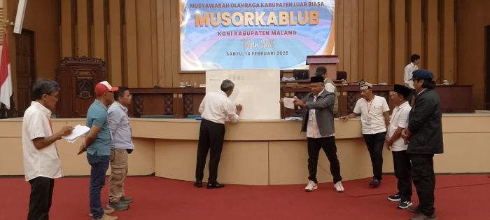 JAVASATU.COM- Darmadi resmi terpilih sebagai Ketua Komite Olahraga Nasional Indonesia (KONI) Kabupaten Malang periode 2026-2028. Pemilihan dilakukan melalui voting tertutup dalam Musyawarah Olahraga Kabupaten Luar Biasa (Musorkablub) yang digelar di ruang paripurna DPRD Kabupaten Malang, Sabtu (14/2/2026).