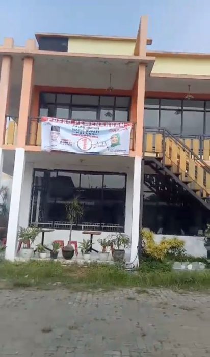 JAVASATU.COM-MALANG- Salah satu gedung unit usaha Badan Usaha Milik Desa (BUMDes) Pujon Lor, Kecamatan Pujon, Kabupaten Malang, diduga digunakan sebagai posko pemenangan pasangan calon (Paslon) Bupati dan Wakil Bupati Malang nomor urut 1, HM Sanusi-Lathifah Shohib (SaLaf). Posko tersebut dilaporkan berada di kafe milik BUMDes di Jalan Brigjend Abdul Manan Wijaya.