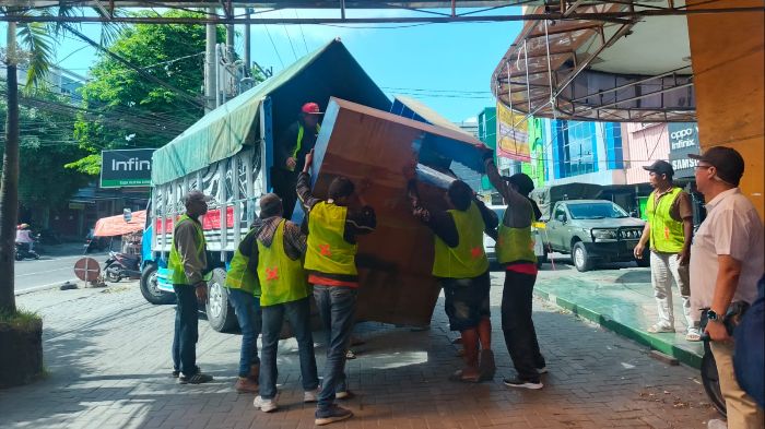 JAVASATU.COM- Pengadilan Negeri (PN) Malang mengeksekusi pengosongan tanah dan bangunan swalayan di kawasan Jalan MT Haryono No. 11, Kelurahan Dinoyo, Kecamatan Lowokwaru, Kota Malang, Kamis (23/4/2026) pagi. Petugas juru sita menurunkan seluruh barang dari dalam gedung sebagai bagian dari pelaksanaan putusan pengadilan yang telah berkekuatan hukum tetap (inkrah).