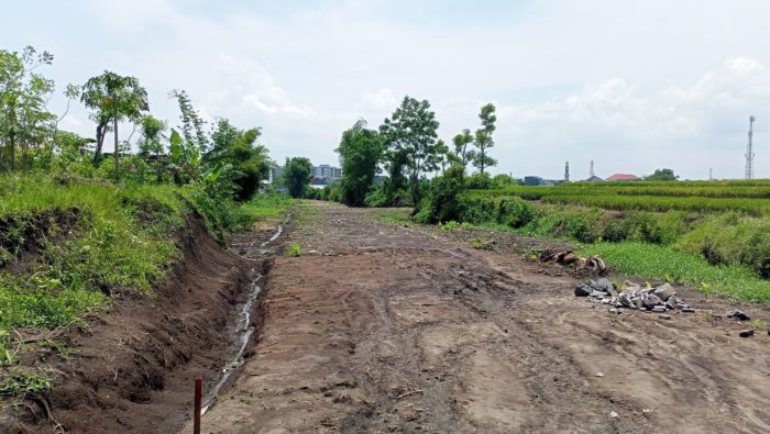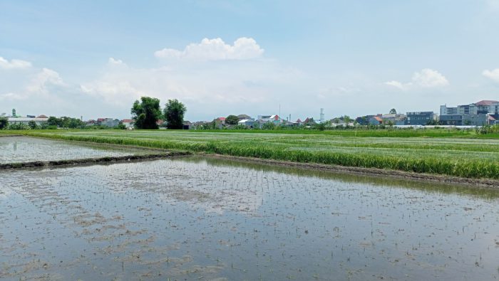 Kawasan pertanian di balik tembok Perumahan Griya Shanta. (Foto: Javasatu.com)