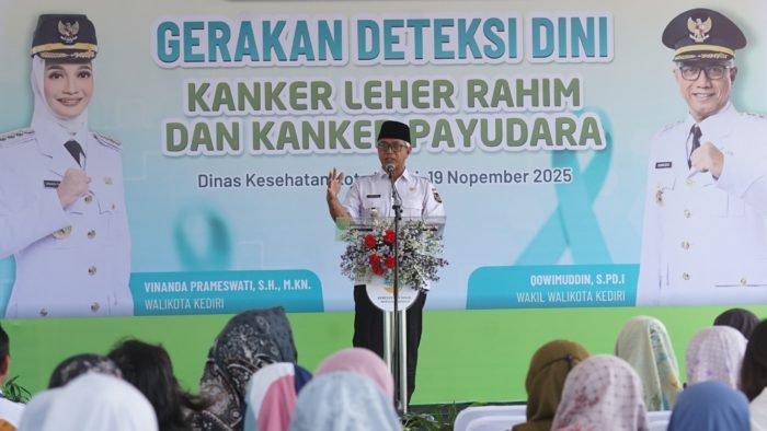 JAVASATU.COM- Wakil Wali Kota Kediri Qowimuddin menekankan pentingnya deteksi dini kanker rahim dan kanker payudara saat menghadiri Gerakan Deteksi Dini di RSUD Kilisuci, Rabu (19/11/2025).