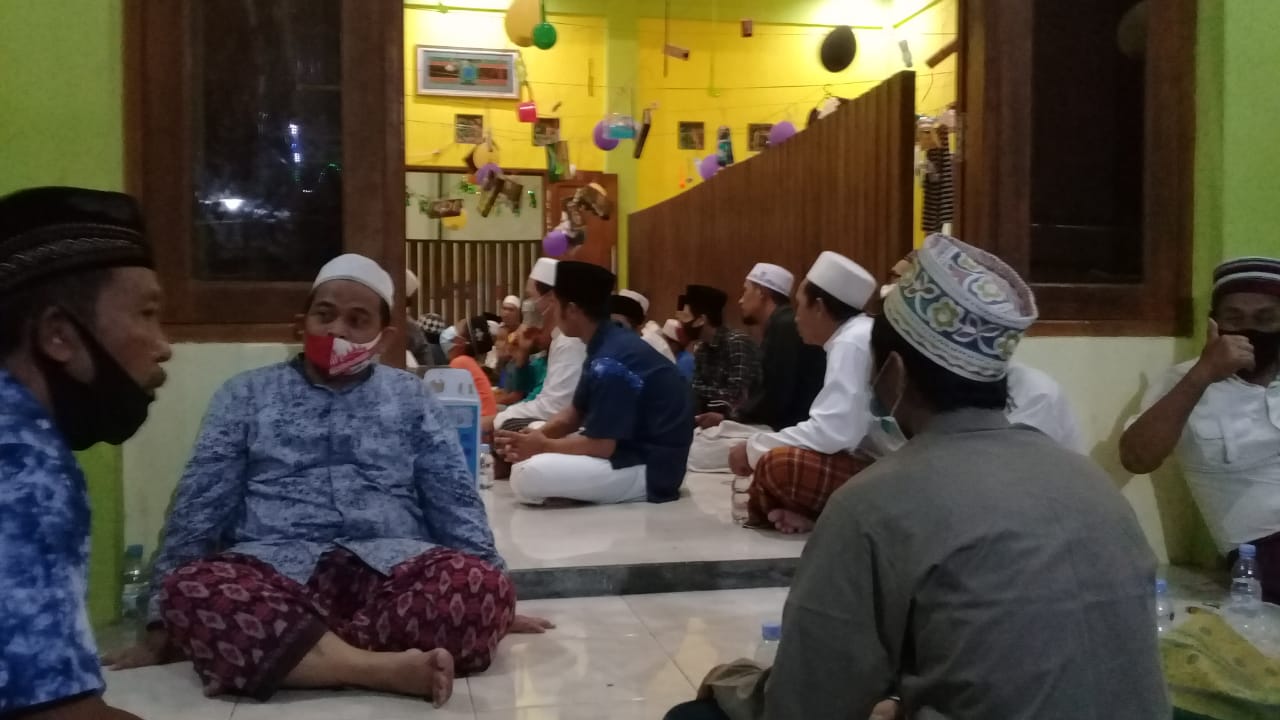 Javasatu,Gresik- Warga perum Griya Sekar Kedaton, Kelurahan Sidomukti, Kecamatan Kebomas, Kabupaten Gresik memperingati Maulid Nabi Muhammad SAW dengan mengedepankan Protokol Kesehatan (Prokes), Jumat (28/10/2020) malam.