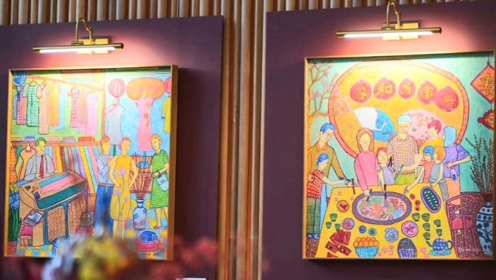 Dalam “Continuum”, Oliver mengangkat pengalaman pribadinya menjalani tradisi keluarga Tionghoa, terutama saat perayaan Imlek. Lukisan-lukisannya menampilkan momen berbagi hidangan, menerima angpao, ritual lo hei, hingga suasana barongsai dan permainan mahjong.