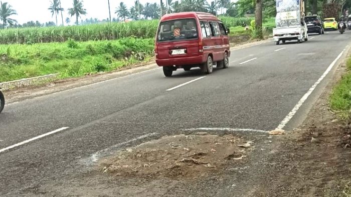 Menurut Cak Dul, kerusakan ini kemungkinan muncul baru-baru ini karena musim hujan yang menggerus permukaan jalan.