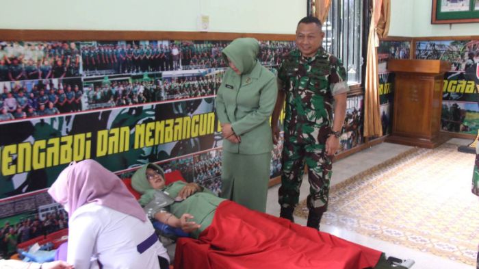 Donor darah bekerja sama dengan tim kesehatan Rumah Sakit Bantuan (Rumkitban) dan Palang Merah Indonesia (PMI) Kabupaten Blora untuk menambah stok darah di wilayah setempat.