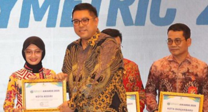 JAVASATU.COM- Kota Kediri berhasil masuk dalam 5 besar Kota/Kabupaten Paling Berkelanjutan di Indonesia berdasarkan penilaian UI GreenCity Metric 2025. Penghargaan diterima langsung oleh Wali Kota Kediri, Vinanda Prameswati, di Mercure Hotel Madiun, Kamis (2/10/2025).