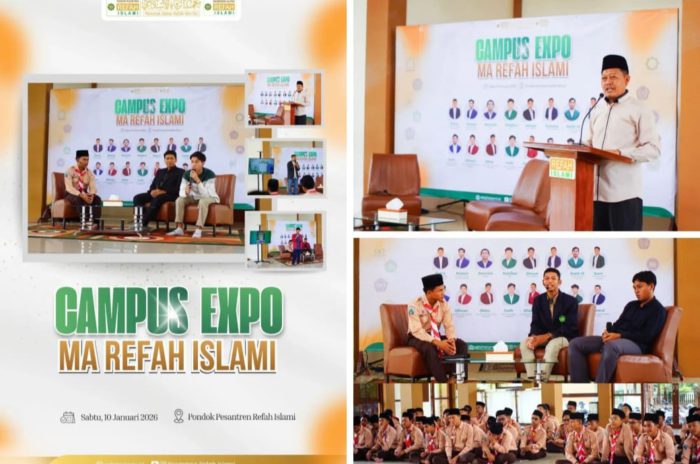 Kepala MA Refah Islami, Ustaz Zimam Azzaki, S.Pd., mengatakan Campus Expo 2026 merupakan program pertama yang digagas manajemen madrasah untuk mempersiapkan santri menghadapi dunia perguruan tinggi.