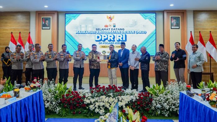 JAVASATU.COM- Bupati Kediri Hanindhito Himawan Pramana, yang akrab disapa Mas Dhito, mendukung langkah Mahkamah Kehormatan Dewan DPR RI (MKD) dalam mencegah pemalsuan tanda nomor kendaraan bermotor (TNKB) khusus anggota DPR RI. Dukungan itu disampaikan saat menghadiri sosialisasi peran dan fungsi MKD di Mapolres Kediri, Rabu (4/2/2026).