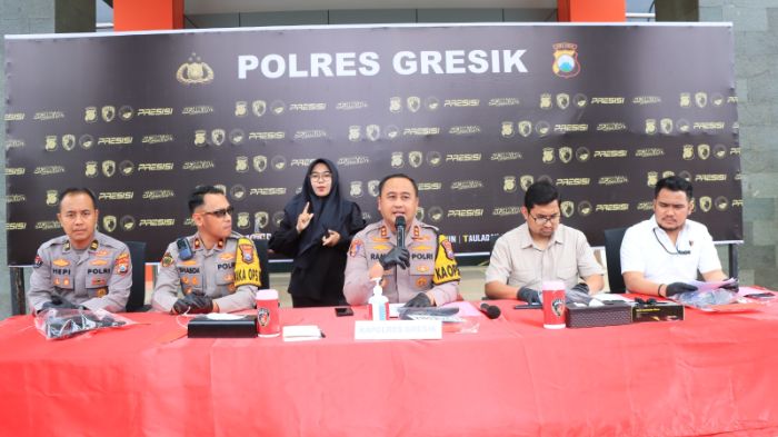 Konferensi pers di Mapolres Gresik, Selasa (10/2/2026). (Foto: Ist)