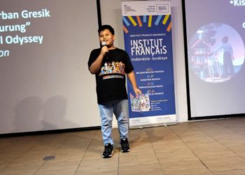 JAVASATU.COM- Seorang siswa kelas 3 SDN Petrokimia Gresik, Jasson, tampil percaya diri memperkenalkan Damar Kurung, warisan budaya khas Gresik, di...
