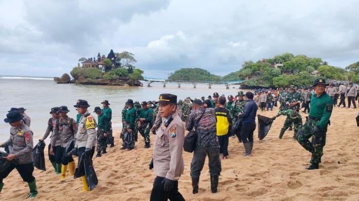 Pantai Balekambang Dipenuhi Sampah, TNI-Polri Turun Tangan