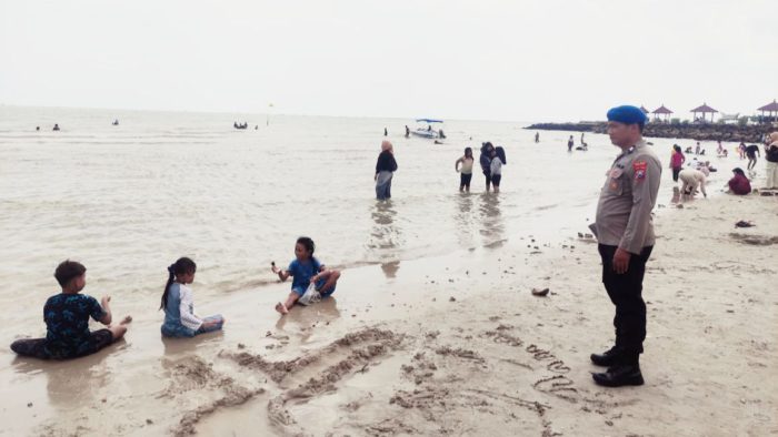 JAVASATU.COM- Pantai Dalegan, Kecamatan Panceng, Kabupaten Gresik, dipadati wisatawan selama libur Natal dan Tahun Baru (Nataru). Untuk memastikan keamanan dan keselamatan pengunjung, Polres Gresik melalui Satuan Polisi Perairan dan Udara (Satpolair) meningkatkan pengamanan di kawasan wisata tersebut, Sabtu (27/12/2025).