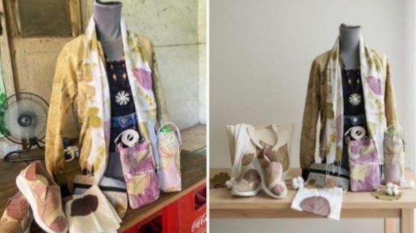 Perbandingan tampilan produk Metik EcoPrint sebelum dan sesudah diolah secara visual menggunakan teknologi Artificial Intelligence (AI). (Foto: Dok Tim BBK 7)