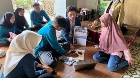 Mahasiswa Tim BBK 7 Kebungson Gresik memberikan edukasi Digital Marketing berbasis Artificial Intelligence kepada pelaku UMKM Metik EcoPrint. (Foto: Dok Tim BBK 7)