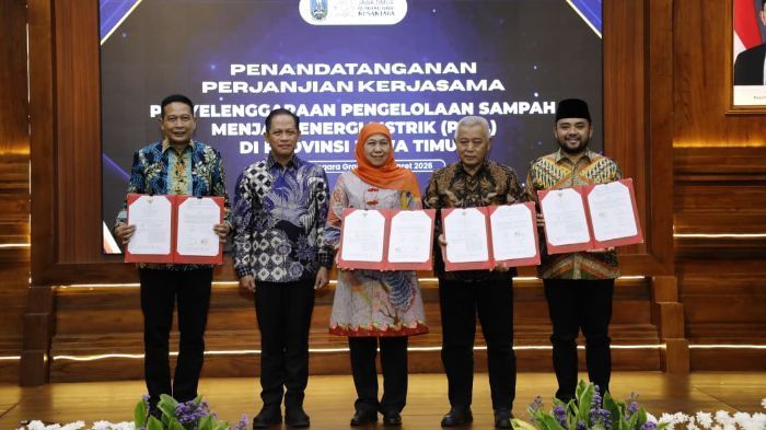 JAVASATU.COM- Pemerintah Provinsi Jawa Timur (Pemprov Jatim) bersama pemerintah daerah di Malang Raya resmi menandatangani Perjanjian Kerja Sama (PKS) Pengolahan Sampah Menjadi Energi Listrik (PSEL) atau waste to energy (WtE), di Gedung Negara Grahadi, Sabtu (28/3/2026). Kerja sama ini menjadi langkah strategis dalam transformasi pengelolaan sampah berbasis energi terbarukan.