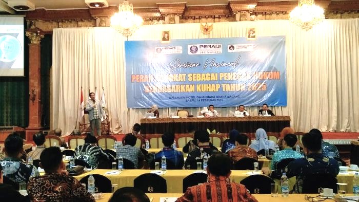 JAVASATU.COM- Perhimpunan Advokat Indonesia (PERADI) DPC Kota Malang menggelar Seminar Nasional Kitab Undang-Undang Hukum Acara Pidana (KUHAP) 2025, Sabtu siang (14/2/2026), di ballroom Hotel Gajahmada Graha Malang, untuk membekali advokat memahami prosedur hukum pidana terbaru.