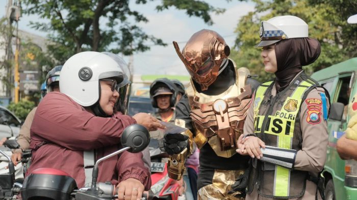 Polisi Malang Jadi “Super Hero”, Edukasi Lalu Lintas di Simpang Empat Kepanjen