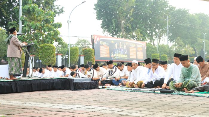 JAVASATU.COM- Polres Gresik memanfaatkan momentum Idulfitri 1447 Hijriah untuk mempererat kedekatan dengan masyarakat melalui kegiatan Salat Id dan halalbihalal di lingkungan Mapolres, Sabtu (21/3/2026).