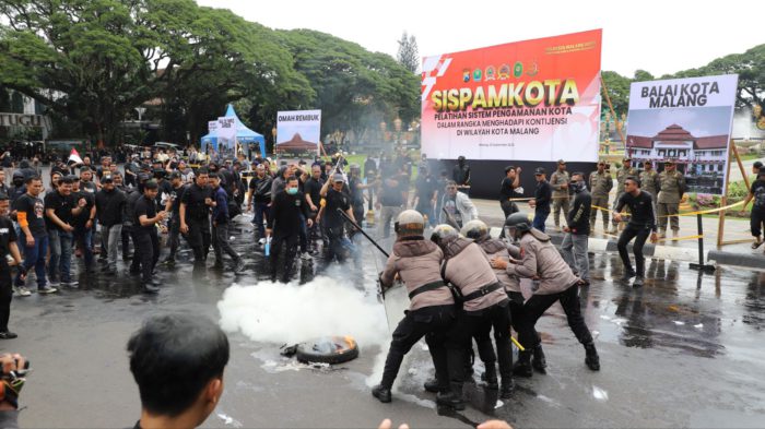 Kapolresta Malang Kota Kombes Pol Nanang Haryono menjelaskan, simulasi Sispamkota bertujuan melatih kesiapan dan sinergi lintas instansi.