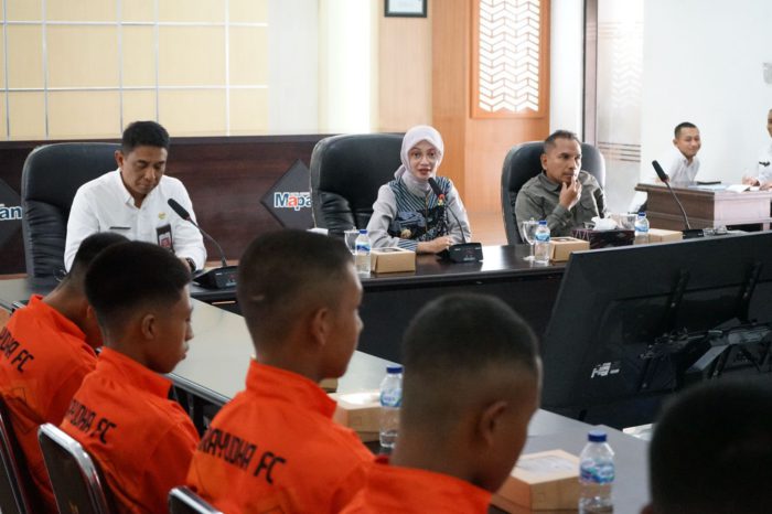 JAVASATU.COM- Wali Kota Kediri Vinanda Prameswati atau Mbak Wali memberikan arahan dan motivasi kepada para atlet dan pelatih SSB Wira Yudha yang akan berlaga di 16 besar Piala Menpora U-15. Pertemuan berlangsung di Ruang Kilisuci Balai Kota Kediri, Rabu (24/9/2025).