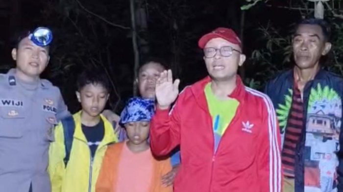 Hepi menjelaskan, keempat wisatawan yang seluruhnya laki-laki itu terdiri dari dua orang dewasa dan dua anak-anak. Mereka ditemukan sekitar pukul 19.00 WIB setelah tim gabungan menyisir medan perbukitan dan hutan yang dikenal sulit serta minim penerangan.