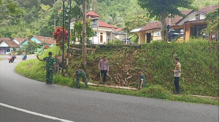 JAVASATU.COM- TNI dan Polri bersama warga Desa Trimulyo, Kecamatan Wadaslintang, Kabupaten Wonosobo, menggelar aksi bersih-bersih selokan untuk mencegah banjir dan penyakit, Jumat (24/4/2026). Kegiatan karya bakti ini dilakukan di lingkungan Koramil dan Polsek Wadaslintang dengan melibatkan puluhan personel serta masyarakat setempat.