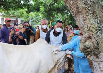 JAVASATU.COM-GRESIK- Bupati Gresik H. Fandi Akhmad Yani (Gus Yani) meninjau langsung pelaksanaan vaksinasi dosis pertama Penyakit Mulut dan Kuku (PMK)...