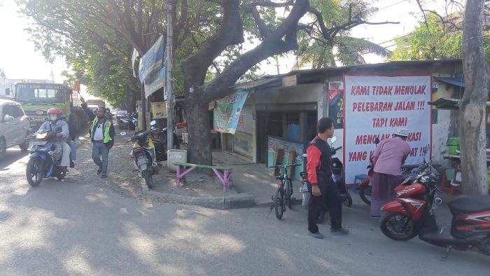 Pasalnya, puluhan pedagang yang terdampak pelebaran jalan itu tetap menolak direlokasi ke tempat yang telah ditentukan Pemerintah Kabupaten (Pemkab) Gresik.