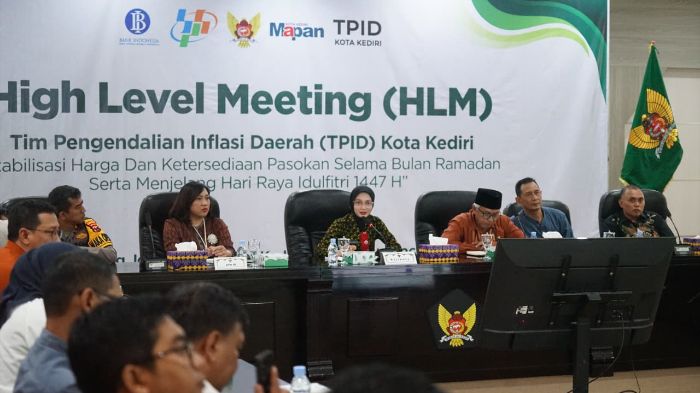 JAVASATU.COM- Wali Kota Kediri Vinanda Prameswati memimpin High Level Meeting (HLM) Tim Pengendali Inflasi Daerah (TPID), Jumat (13/02/2026), untuk membahas stabilitas harga dan ketersediaan pasokan kebutuhan pokok menjelang Ramadan 1447 H dan Idulfitri. Pertemuan ini digelar untuk memastikan pasokan pangan aman dan harga tetap stabil selama momen konsumsi tinggi.