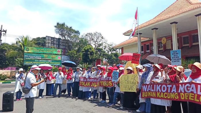 JAVASATU.COM- Puluhan warga Perumahan Griya Shanta, Kota Malang, menggelar unjuk rasa di depan Pengadilan Negeri (PN) Malang Kelas 1A, Selasa (18/11/2025). Aksi tersebut dilakukan sebagai bentuk penolakan terhadap rencana pembangunan akses jalan tembus di kawasan hunian tersebut.
