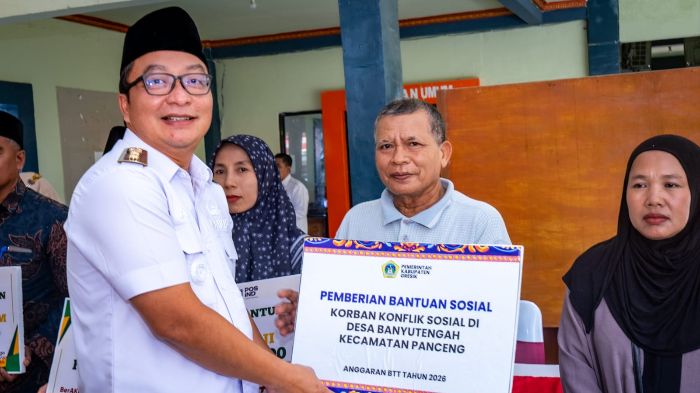 JAVASATU.COM- Pemerintah Kabupaten (Pemkab) Gresik menyalurkan bantuan sosial (bansos) kepada warga terdampak konflik sosial di Desa Banyutengah, Kecamatan Panceng. Penyerahan simbolis diberikan di Kantor Kepala Desa Banyutengah kepada 47 warga penerima, Rabu (11/3/2026).
