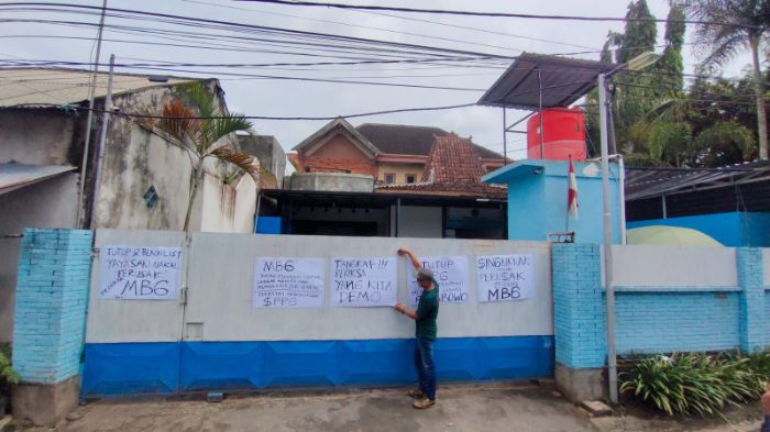 Dalam aksinya, massa membentangkan poster tuntutan dan memasangnya di pagar SPPG. Mereka mendesak pemerintah mengambil tindakan tegas, termasuk mem-blacklist yayasan tersebut karena dinilai merugikan banyak pihak.