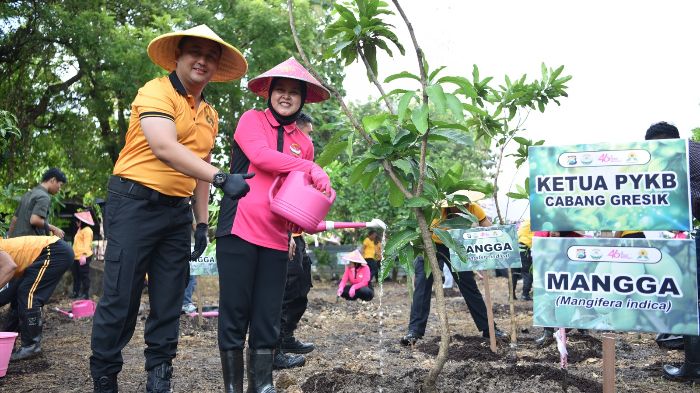 JAVASATU.COM- Yayasan Kemala Bhayangkari (YKB) Cabang Gresik menanam puluhan pohon produktif di Asrama Polisi Randuagung, Kecamatan Kebomas, Rabu (22/4/2026). Aksi penghijauan ini menjadi bagian dari peringatan HUT ke-46 YKB sekaligus upaya menjaga lingkungan dan memperkuat ketahanan pangan di kawasan perkotaan.