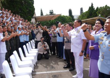 JAVASATU.COM- Panglima TNI Laksamana TNI Yudo Margono, S.E., M.M. didampingi Ketua Umum Ikatan Kesejahteraan Keluarga TNI Pragati Wira Anggini (Ketum...