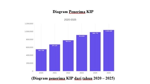 Data penerima KIP dari tahun 2020 hingga 2025 menunjukkan peningkatan jumlah penerima setiap tahun. Hal ini mencerminkan komitmen pemerintah dalam memperluas akses pendidikan, terutama di tengah krisis sosial dan ekonomi. Namun, peningkatan kuantitas tersebut belum sepenuhnya diiringi dengan ketepatan sasaran. Sistem data yang terintegrasi tetap bergantung pada input awal yang belum tentu mencerminkan kondisi terkini keluarga penerima.