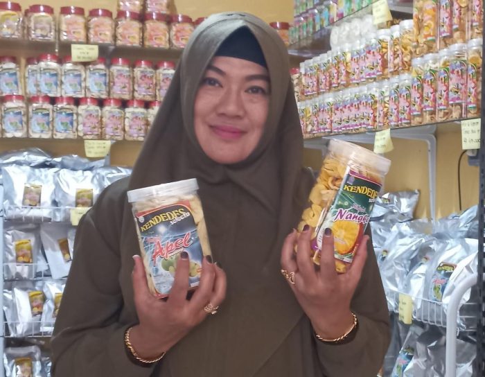 JAVASATU.COM-BATU- Menjelang Libur Natal 2022 dan Tahun Baru 20223 (Nataru) permintaan kripik buah di Kota Batu meningkat drastis. Seperti yang terpantau di kripik buah produksi Kendedes Selecta kota Batu. Enam varian dagangan kripiknya laris manis, terutama jenis varian kripik buah apel.
