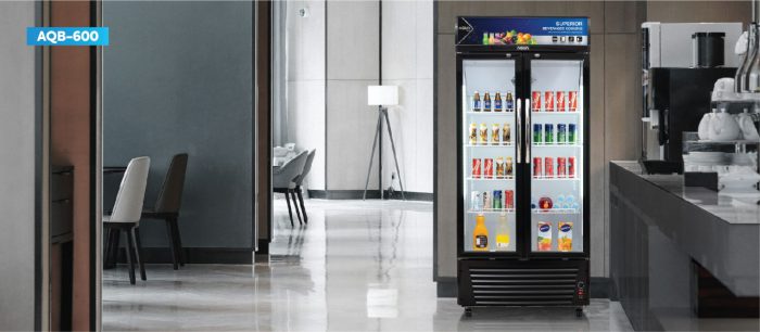 Terkait daya tampung, produk ini mempunyai kapasitas 404 Liter untuk AQB-600 dan 464 Liter untuk AQB-700. Tidak hanya memiliki kapasitas yang besar, showcase juga memiliki pintu kaca agar makanan atau minuman yang ditaruh di dalamnya dapat terlihat dari luar dan memudahkan pembeli saat hendak memilih minuman. Selain itu, showcase ini juga dilengkapi dengan teknologi unggulan yang dapat memudahkan dan memberikan kenyamanan lebih bagi para konsumen. Diantaranya, Big Canopy Space dimana area yang dapat digunakan untuk memasang iklan lebih besar, Adjustable Shelves yaitu rak yang dapat diatur ketinggiannya sesuai dengan jenis minuman yang akan dipajang, dan Big Handle Dooruntuk memudahkan konsumen membuka dan menutup saat ingin membeli.