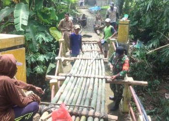 JAVASATU.COM- Seorang Babinsa dari Koramil 03/Banjarejo bersama warga Desa Klopoduwur melakukan kerja bakti memperbaiki jembatan yang rusak di Dukuh Semengko,...