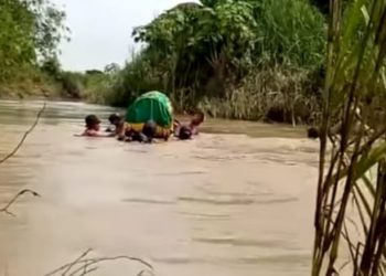 Pemakaman jenazah dengan menyeberangi aliran air yang deras Sungai Lamong. (Foto: Istimewa/Javasatu.com) Javasatu,Gresik- Viral di media sosial (medsos) foto warga...