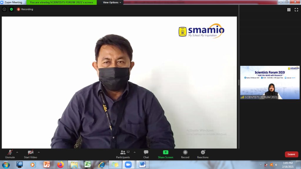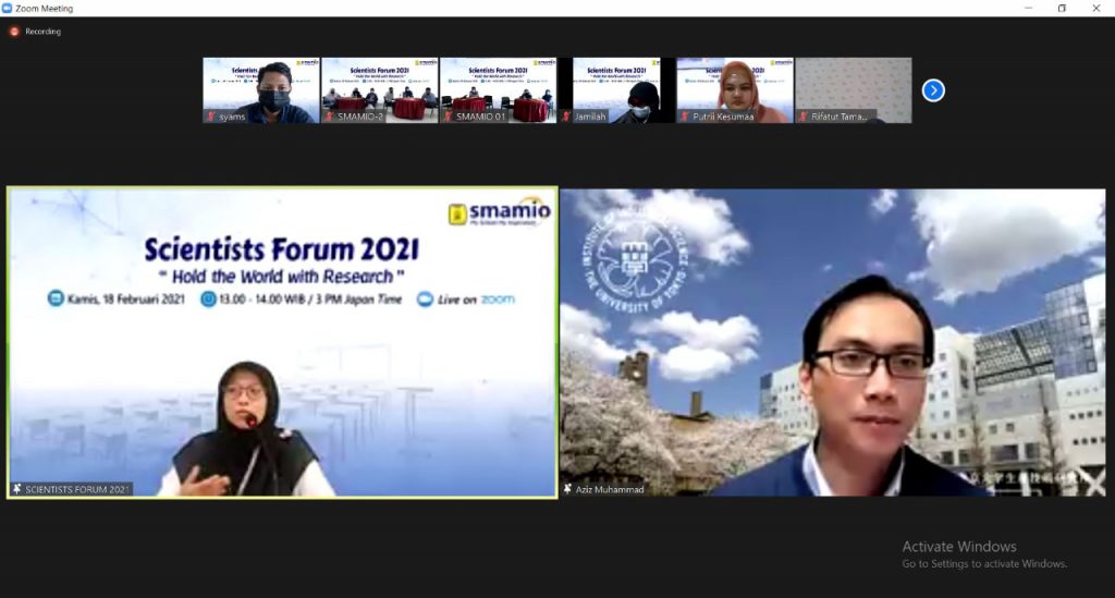 Javasatu,Gresik- Melalui siaran seminar Aplikasi Zoom, Aziz yang juga Associate Professor The University of Tokyo ini membagikan ilmu seputar riset. Kegiatan itu diikuti oleh seluruh siswa serta guru melalui daring.
