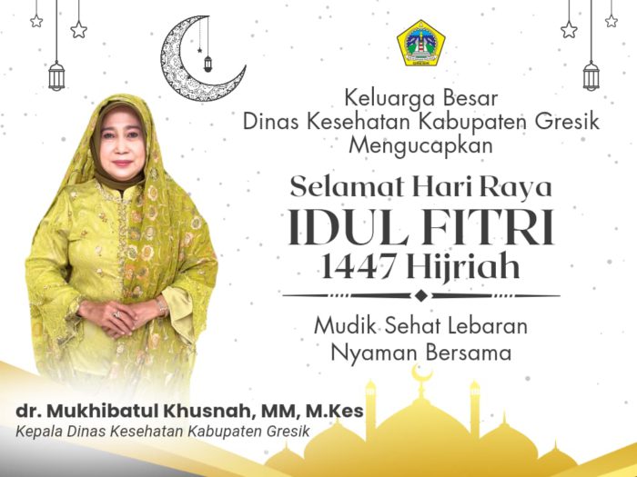 “Kami segenap jajaran Dinas Kesehatan Kabupaten Gresik mengucapkan Selamat Hari Raya Idulfitri 1447 Hijriah, minal aidin wal faizin, mohon maaf lahir dan batin,” pungkasnya.