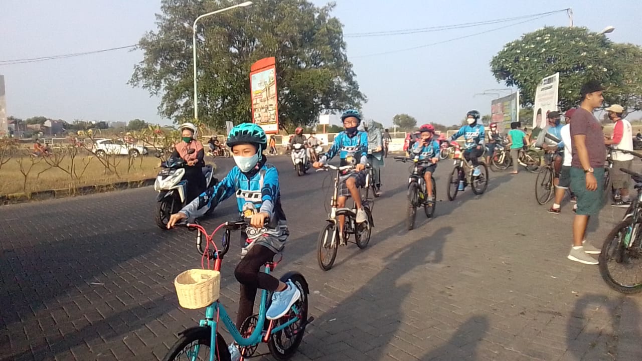 Javasatu,Gresik- Terpantau ratusan warga Kabupaten Gresik melakukan aktifitas minggu pagi dengan bersenam, bersepeda hingga lari-lari kecil di Gresik Kota Batu (GKB) LOVE di era pandemi.