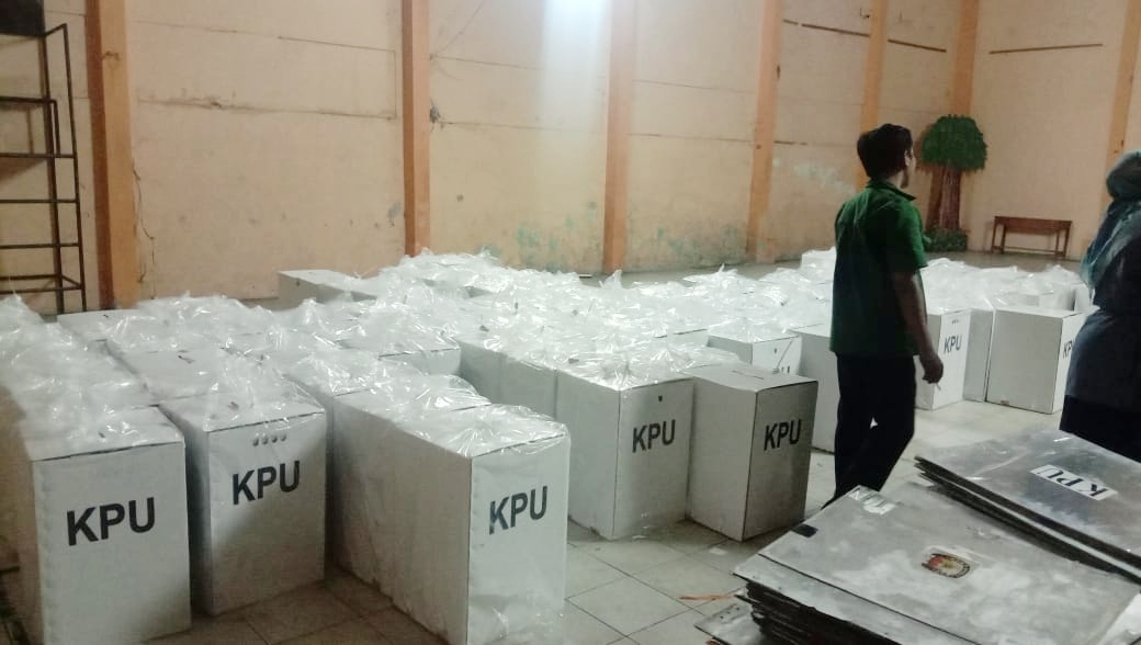 Kotak berisi surat suara yanh sudah di setor ke PPK Gresik. (Sudasir Al Ayyubi/Javasatu.com)