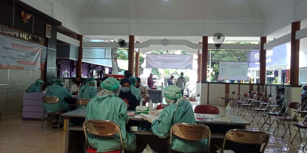 Javasatu,Gresik- Petugas Pemilihan Kepala Daerah (Pilkada) Kabupaten Gresik 2020 tingkat Ad Hoc di Kecamatan Gresik, terdiri dari Panitia Pemilihan Kecamatan (PPK), Panitia Pemungutan Suara (PPS), Kelompok Penyelenggara Pemungutan Suara (KPPS) jalani rapid test, bertempat di Pendopo Kecamatan Gresik, Kamis (3/12/2020).