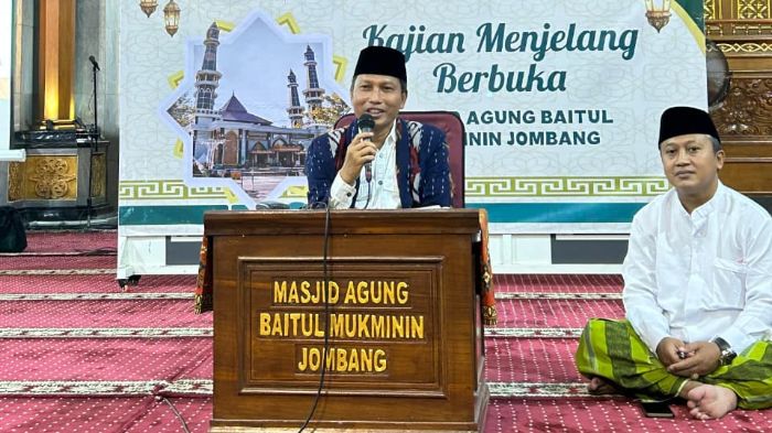 Kajian Hikmah Ramadan dipandu Dr. K.H. Abd Basit Musbachul Fitri, M.HI selaku pengurus Masjid Agung Jombang, acara berlangsung khidmat dan penuh antusiasme jemaah. (nuh)