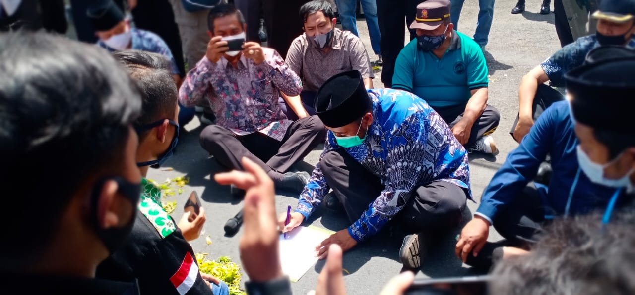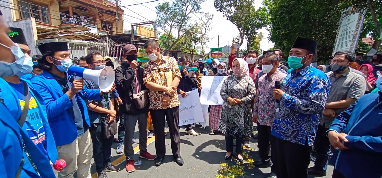 Ini karena plt Ketua DPRD Kabupaten Malang, Sodikul Amin segera menemui para pendemo yang ada di depan kantornya dan langsung berdialog dengan koordinator aksi.